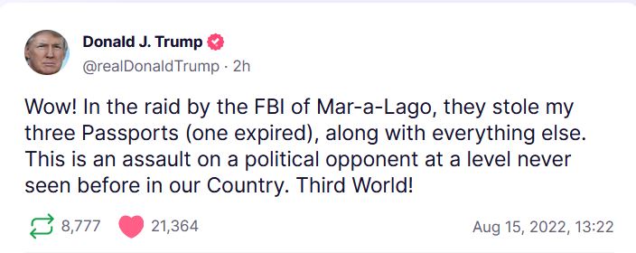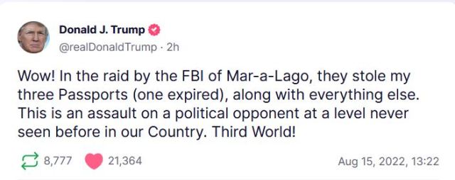 https://www.thegatewaypundit.com/2022/08/update-doj-says-passports-belonging-trump-seized-fbi-mar-lago-raid-returned/