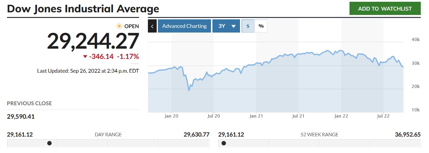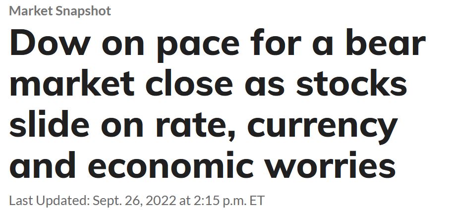 As I look at my retirement account as of last Friday, September 23, the value is down almost 18% from the same date last year, and down 23.43% since the beginning of 2022.