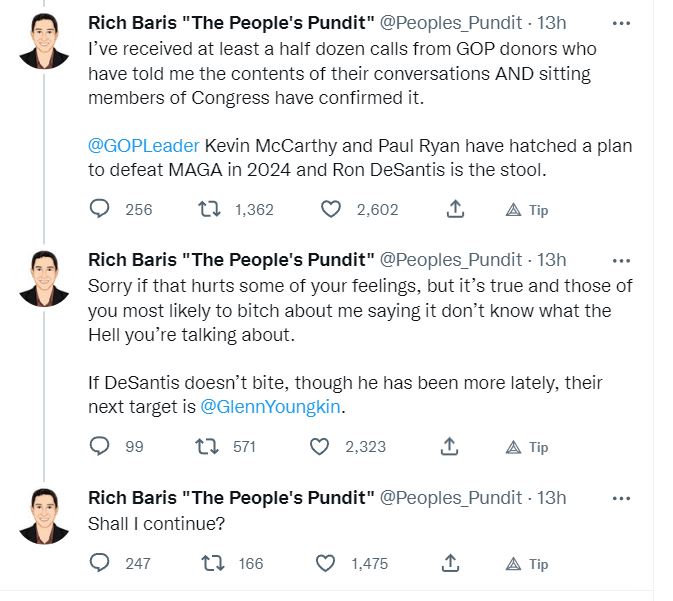 I know the establishment expect to use DeSantis or someone else, but that doesn’t negate the need to bring younger leaders up to scratch. Ad hominem attacks on them, especially Governor DeSantis, in these early days is counterproductive. There are people who let the internet do their thinking for them, and when they read such stuff they can’t let go of it in more realistic circumstances.