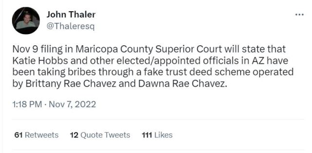 Breger claims that attorney John Thaler investigated money laundering and racketeering in Maricopa County and reviewed over 120,000 documents which include “fake notarizations, fake deeds of trust, fraudulent buyers and or sellers of the real property transactions, as well as other companies used in real estate transactions, such as real estate brokers, mortgage companies Title and Escrow companies, real estate inspection companies, service companies.”