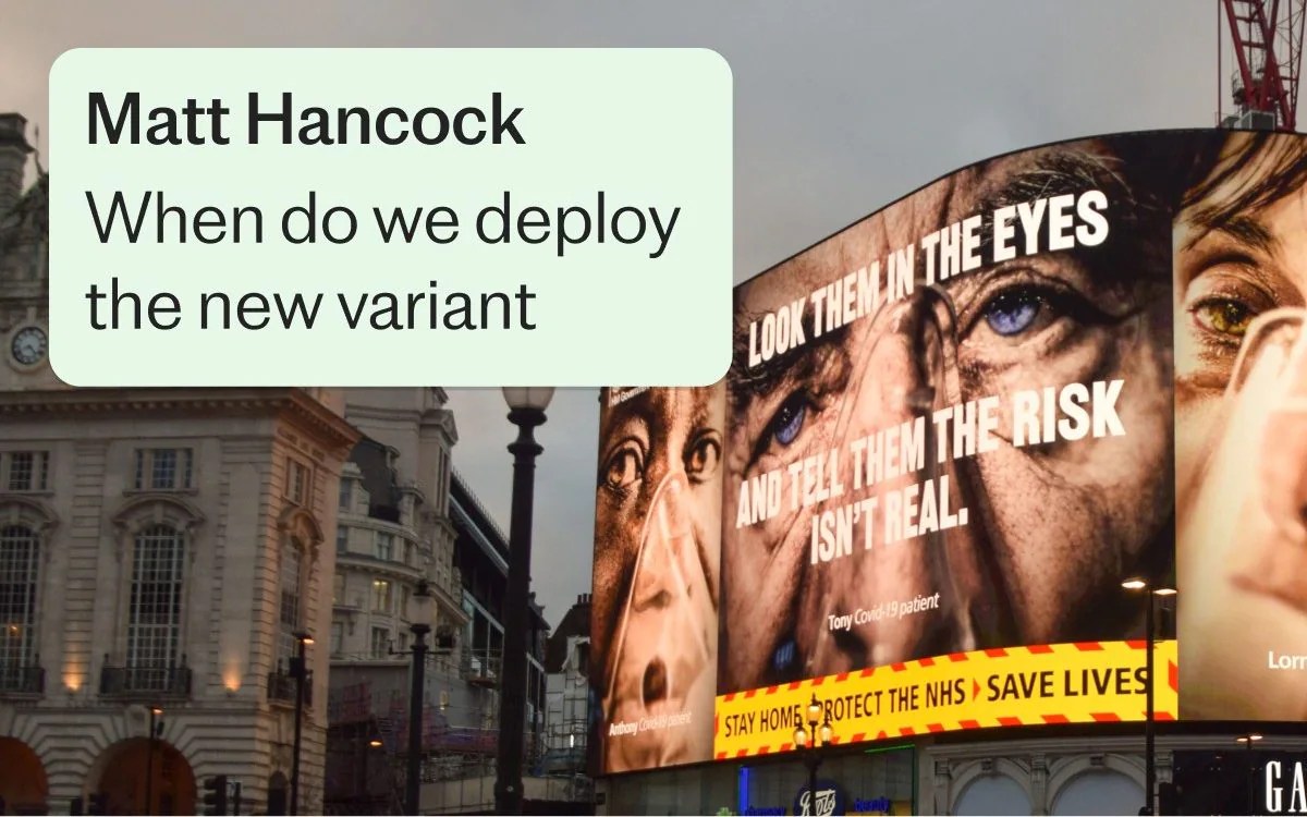 Mr Hancock expressed his worry that talks over Brexit would dominate headlines and reduce the impact, and probed Mr Poole for his media advice. “When do we deploy the new variant,” asked Mr Hancock.