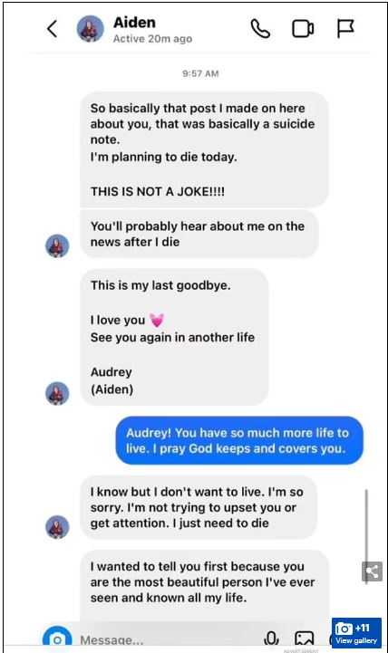 Patton immediately called police, but it was already too late. The shooting had begun. Patton said ‘Audrey has shared with others that she had been suicidal in the past and I knew to take this serious.’