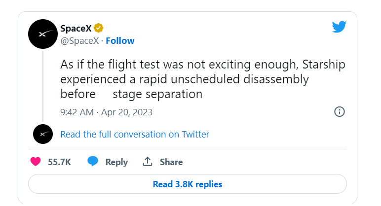 Musk says they learned a lot from the launch, so in ways it was a success. I like his attitude.