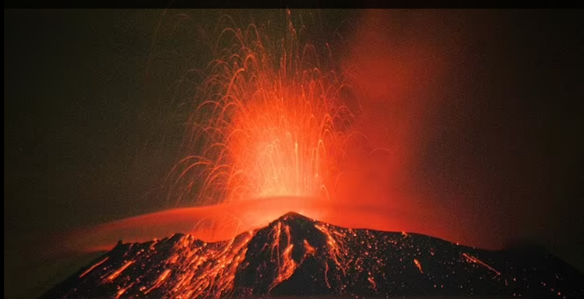 The yellow phase three activated Sunday means ‘intermediate to high activity’ and is triggered when the volcano shows ‘significant explosions of increasing intensity that shoot fragments (of rock) over considerable distances.’