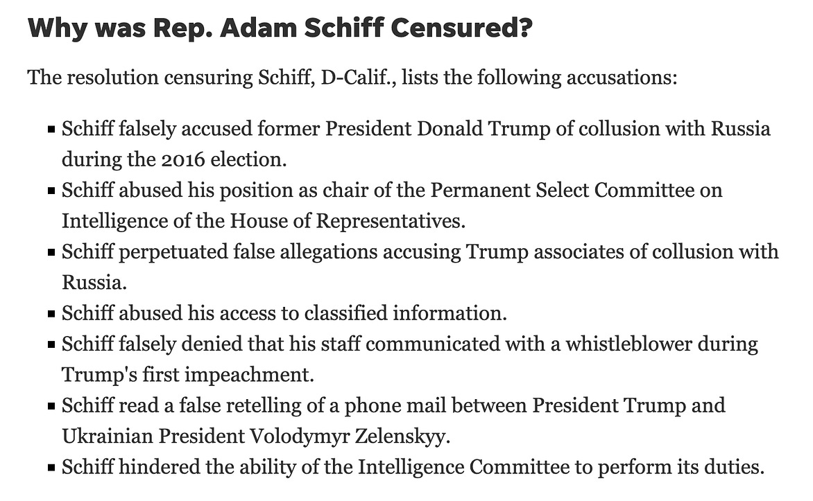 Schiff Censure – the WHY