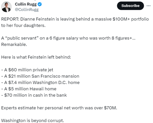 Following the death of Dianne Feinstein, here is an announcement of her assets, which are being passed on to her four daughters.