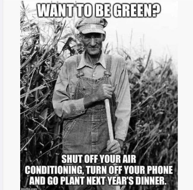 Most of the “green” proponents would starve to death, if they had to grow their own food. They couldn’t handle the work involved.
