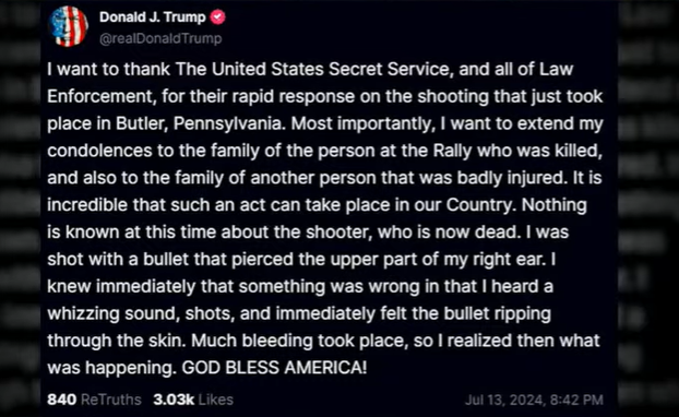 BREAKING: Trump Releases Statement From Medical Facility After Assassination Attempt