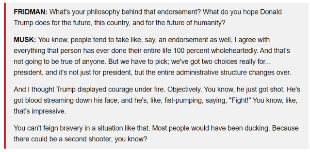 Elon Musk was interviewed by Lex Fridman recently. Here are some of his comments: