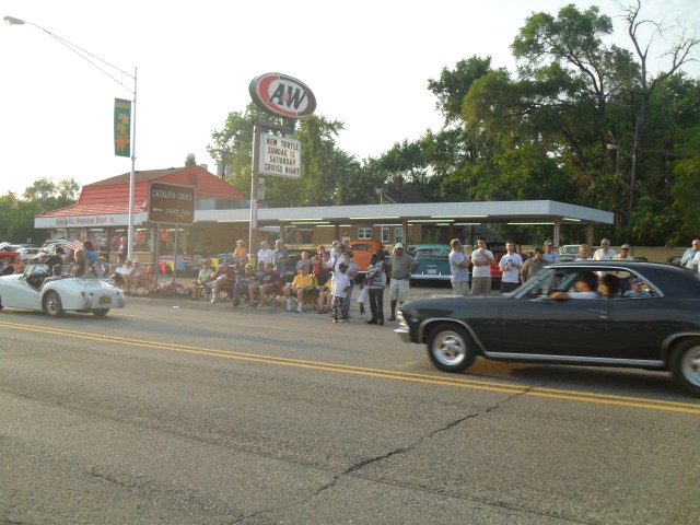 Events range from car shows, a car parade, a 1950’s style drive-in with carhops, dance exhibitions, music, and old-time outdoor movies. Bus service is free along Woodward all day on Saturday, so that those attending can easily visit the events in all of the participating cities. There is a real A&W restaurant with carhops about a mile from Woodward in the town I used to live in – Berkley, MI. It is next door to my veterinarian’s office.