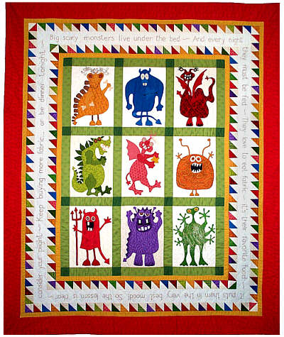 I have made the monster quilt top, but this photo isn’t of the one that I made. The quilts on the next two days are ones that I made for my grandsons when they were babies.