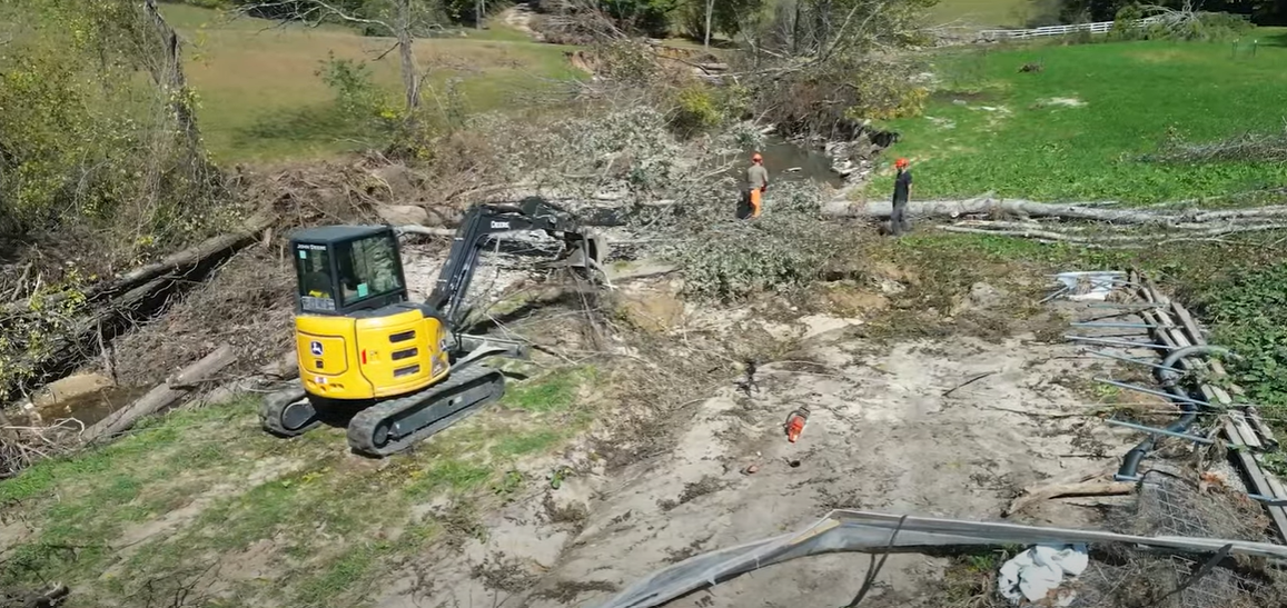 They learn that they will be receiving a new high tunnel and a wood chipper to aid the cleanup.