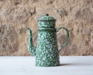 I don’t know about the pot, I thought maybe graniteware which I’m a big fan of. When my boys were young they broke or chipped so many plates I bought graniteware plates, bowls, and cups. Always loved them.