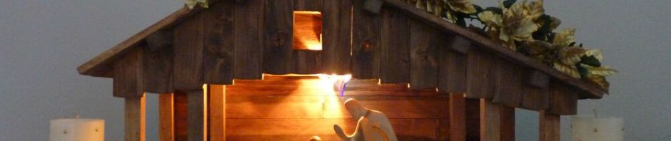 I have a very small creche in my small house (only a few inches high), with inexpensive figures made of some kind of flexible resin that I got at Michael’s Craft Store. I made my creche out of cardboard, glue and paint. I use it every year, and the one in this story reminded me immediately of my own very humble creation of the manger scene. It has Mary, Joseph, baby Jesus, a donkey, a cow, a couple of shepherds and sheep and the three wise men with their camels. There is also the angel announcing the Savior’s birth. I attach it to the roof with a twist tie through a hollow in the corrugated cardboard roof.
