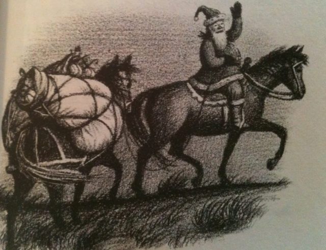 “Laura was anxious because Christmas was near, and Santa Claus and his reindeer could not travel without snow. Mary was afraid that, even if it snowed, Santa Claus could not find them, so far away in Indian Territory. When they asked Ma about this, she said she didn’t know.”