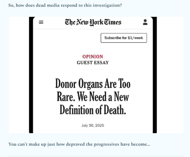 I am not an organ donor for other reasons. But, this makes me question being one ever.
