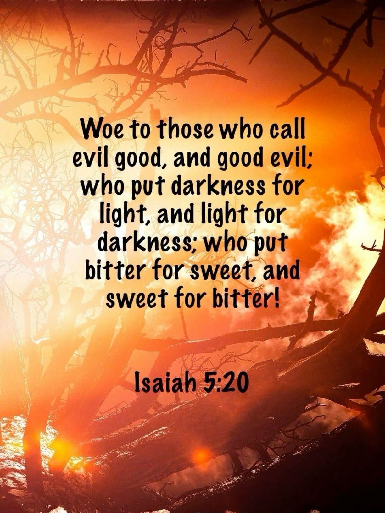 Isaiah 5:20 is a prophetic declaration of woe pronounced against those who deliberately invert moral and spiritual truths. The verse states, “Woe to those who call evil good and good evil, who put darkness for light and light for darkness, who put bitter for sweet and sweet for bitter!”.