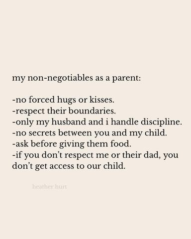 Number six. Define respect. This sounds like your idea of bargaining for leverage with your kids, using them to make whomever submit. Depends. If you’ve got a family member or maybe crazy ex-in laws who upset your child with horrible things, by all means, it’s reasonable to keep them away.