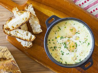 Okay, breakfast is served. Going to be a long day, I went for the nutrition this morning. This isn’t my picture, but mine is exactly the same, except I didn’t have chives! Oeufs cocotte it is!