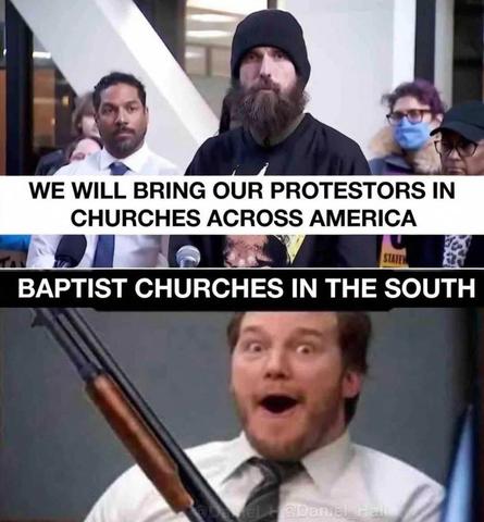 I have to say, I think this one is pretty true. I donāt know how it is in other parts of the country, but in most neighborhoods down here, including my own, there a multiple little churches within walking distance, most Baptist. And a couple of pretty big ones too. Protestors would not leave these churches without a trip to the ER. I doubt theyād get shot, but for sure beat the ever lovinā hell out of.