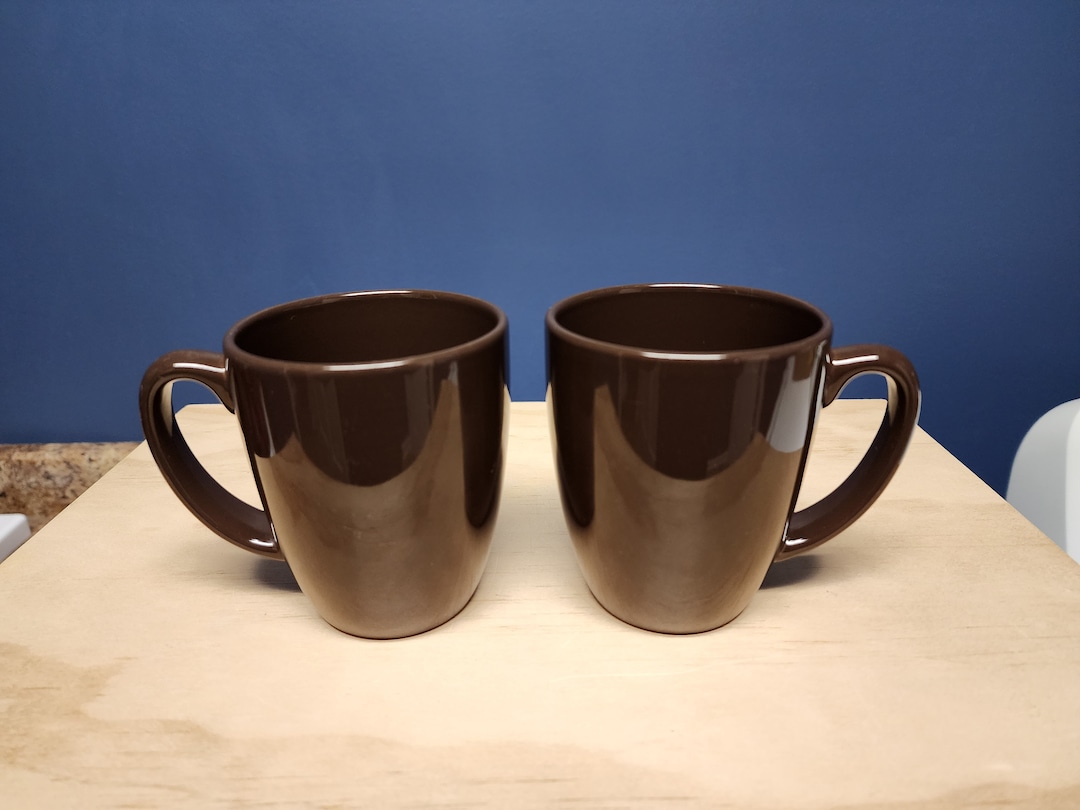If 30 mugs arrive promptly, please assure Mrs. T that we aim for her not to do kitchen duty by filling the dishwasher multiple times. Instead all coffee klatch attendees may take home the mugs they used. Any remaining unused mugs may go in the mug and cup collection cabinets for future use by whichever friendly face arrives at your domicile.
